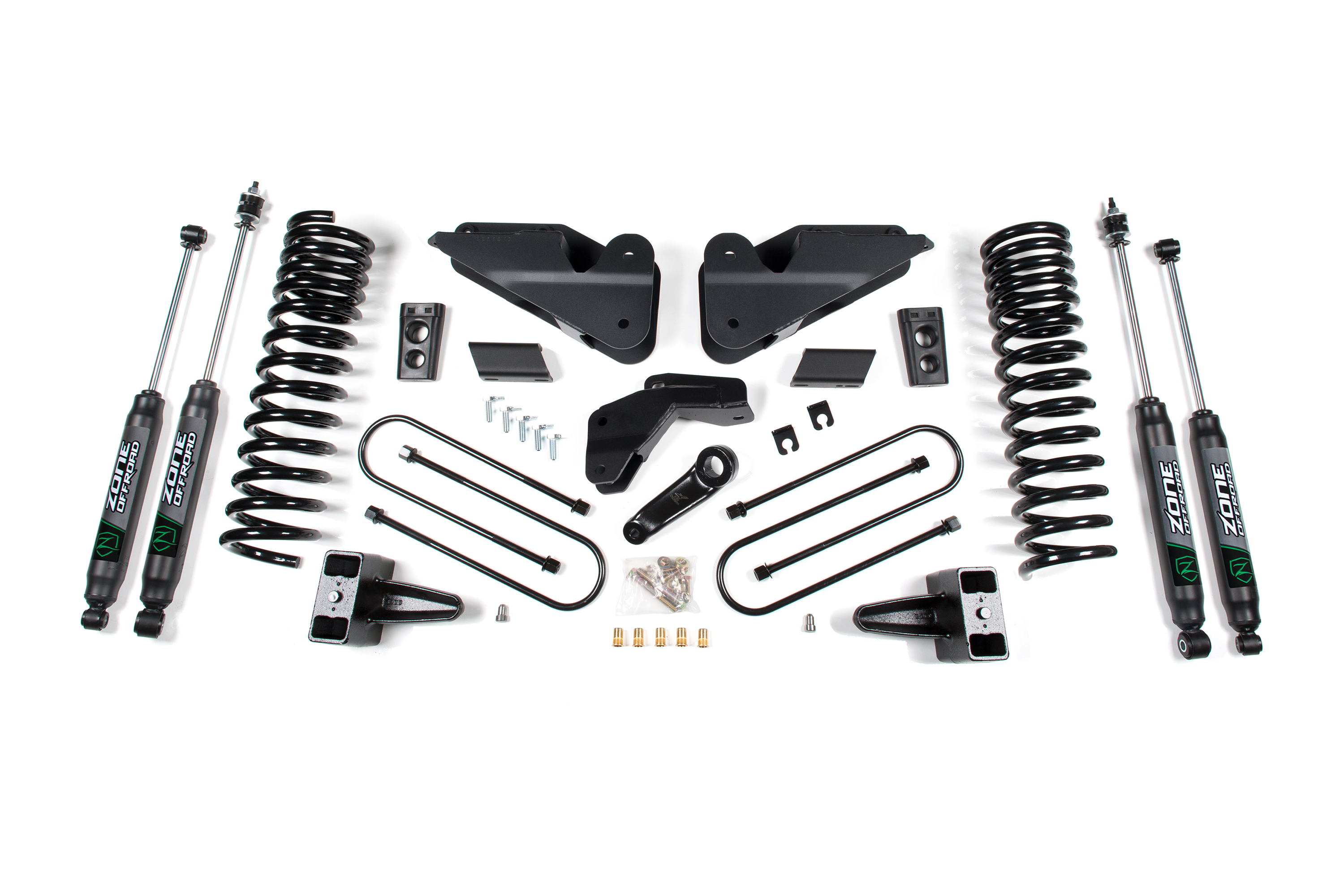 Take your RAM 3500 to new heights with this 5.5 Inch lift kit from Zone Offroad. Kits include everything needed from full length coil springs and stout radius arm relocation brackets to steering correction and rear lift to level the stance.
