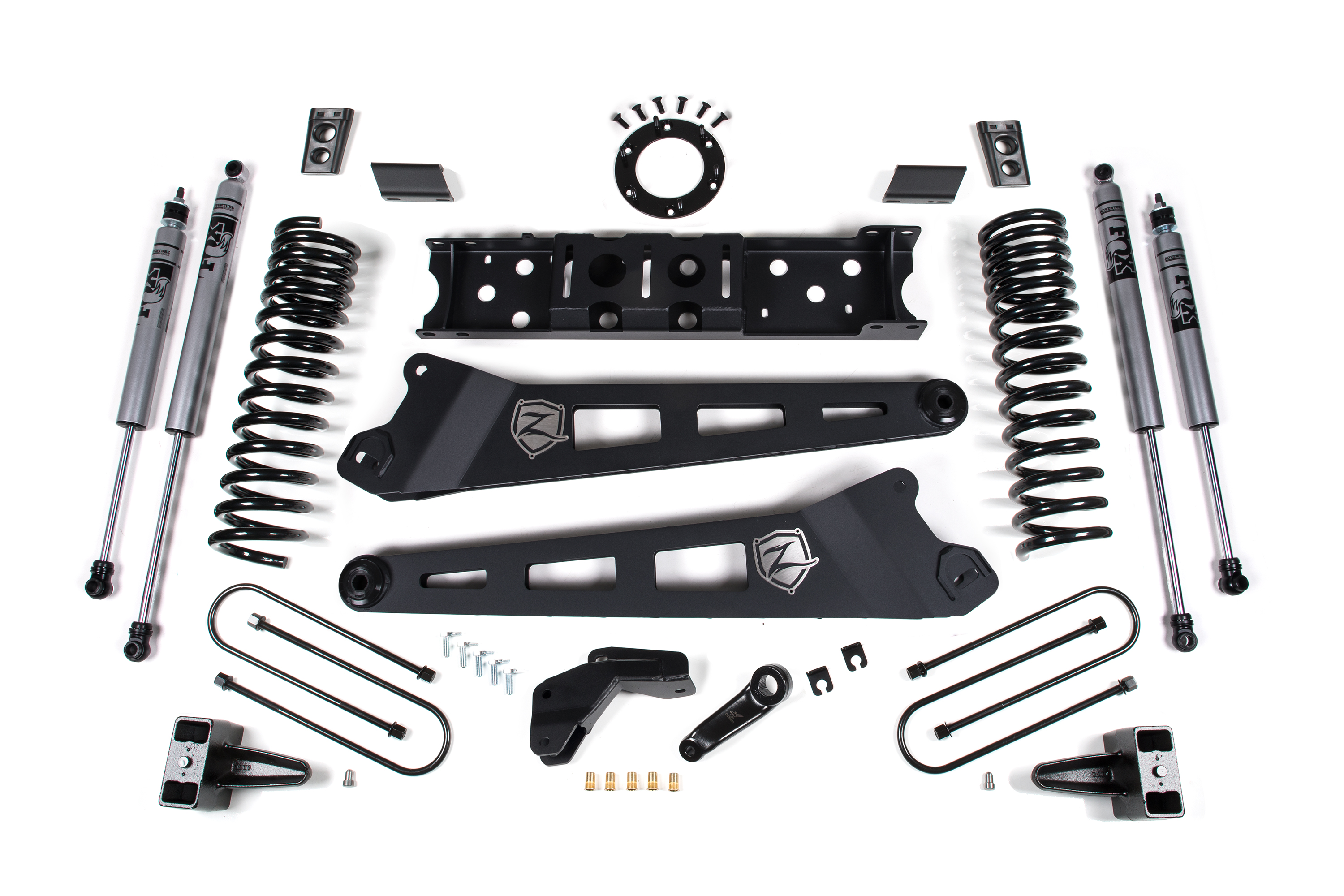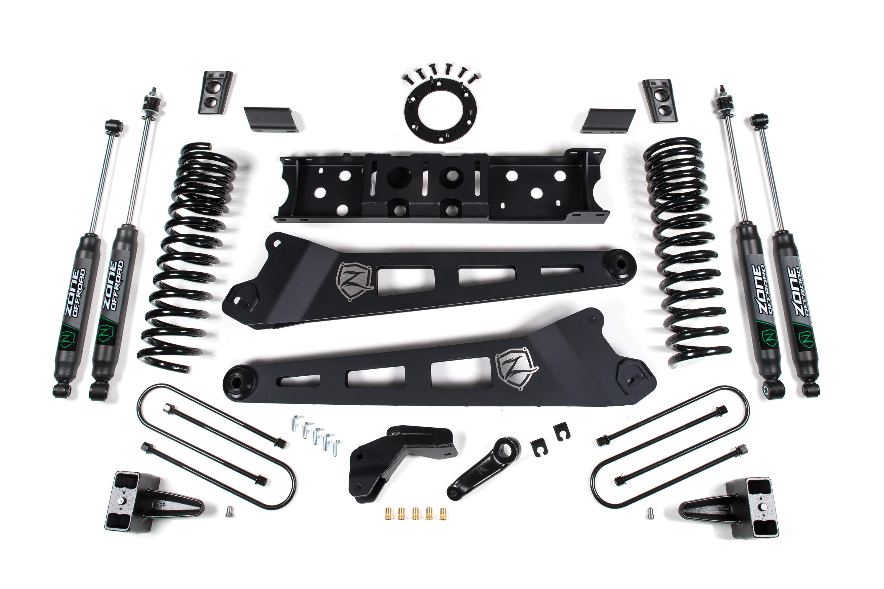 Take your RAM 3500 to new heights with this 4 Inch lift kit from Zone Offroad. Kits include everything needed from full length coil springs and high strength radius arms to steering correction and rear lift to level the stance.