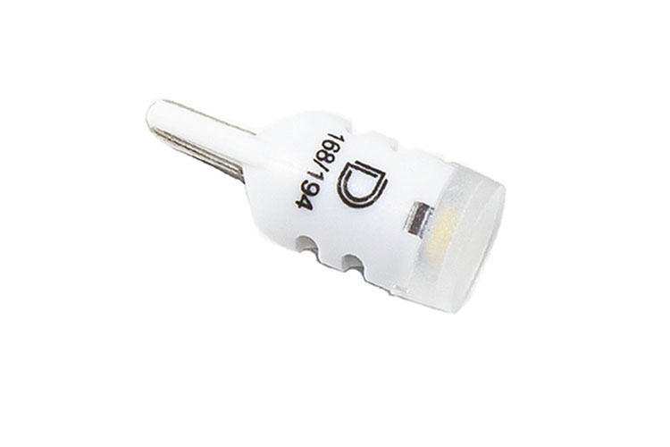 Design. The 194 HP3 LED bulb is a compact, simple LED replacement with proven performance. The single diffused optic spreads light in the original lamp, for OEM-style appearance and function. With its dual-lead contacts, it will fit snugly in the socket, and its light weight means it won't vibrate loose over time.