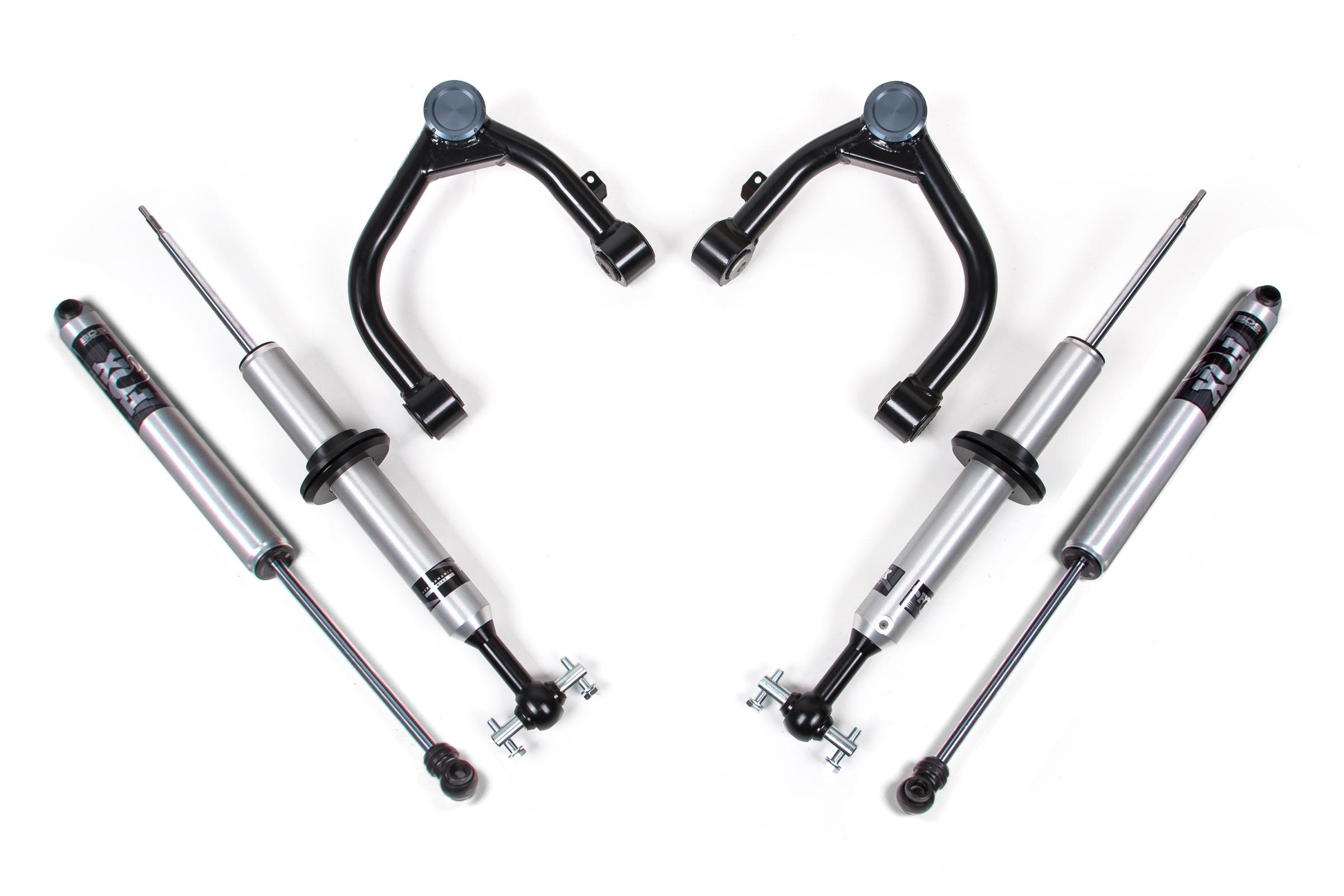 Built to outperform, upgrade your Chevy Silverado and GMC Sierra 1500 with this 2-inch lift kit featuring FOX 2.0 Snap Ring Struts from BDS Suspension.