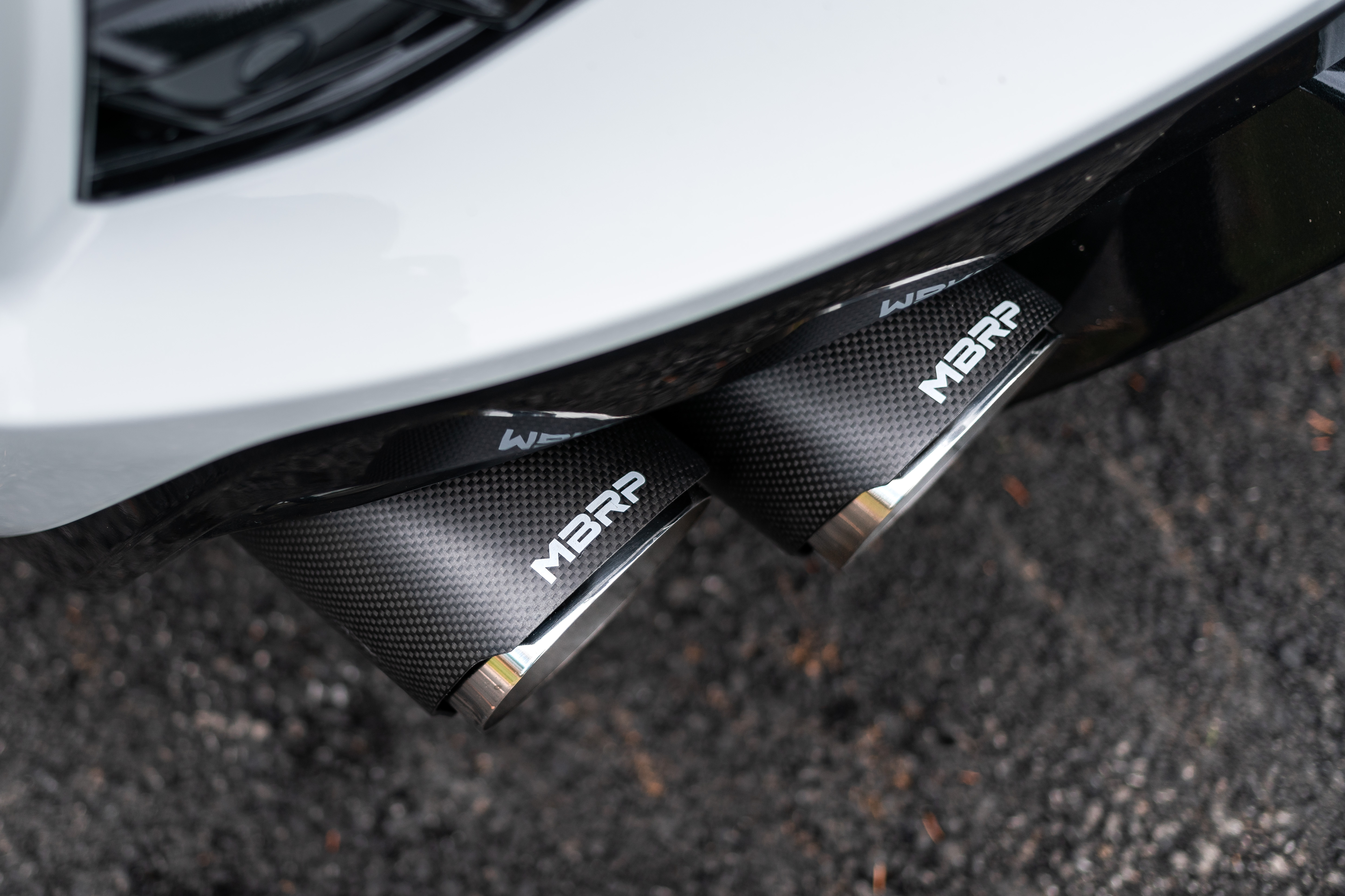 Sound Quality and Appearance: Our designs create a signature MBRP exhaust tone. For this Cat-Back we have retained the active exhaust function of your vehicle, allowing you to enjoy that deep aggressive rumble, or a more moderate tone great for longer drives. MBRP's S70413CF further heightens the bold appearance of your C8, by completing the look with our Carbon Fiber tips.