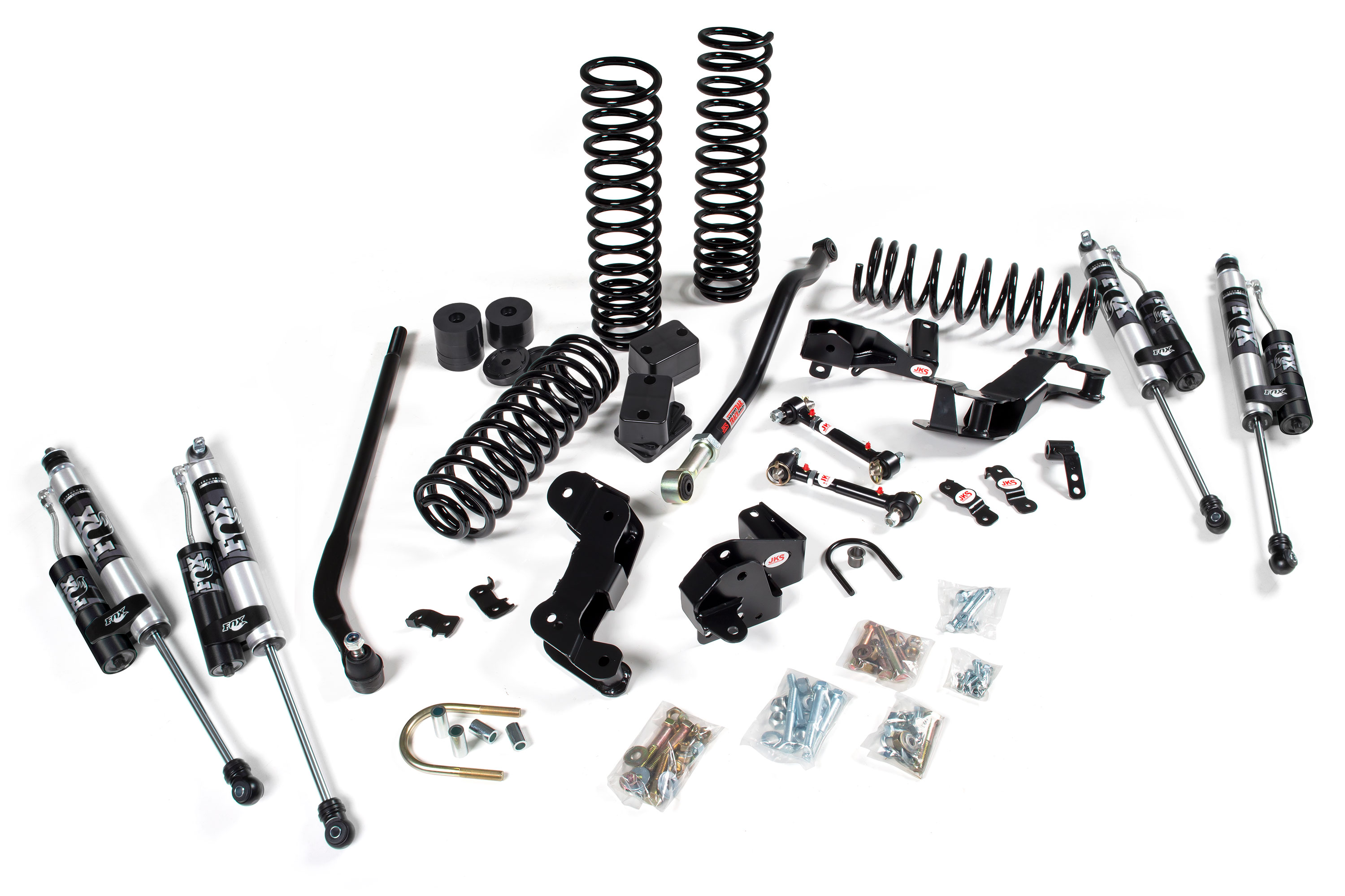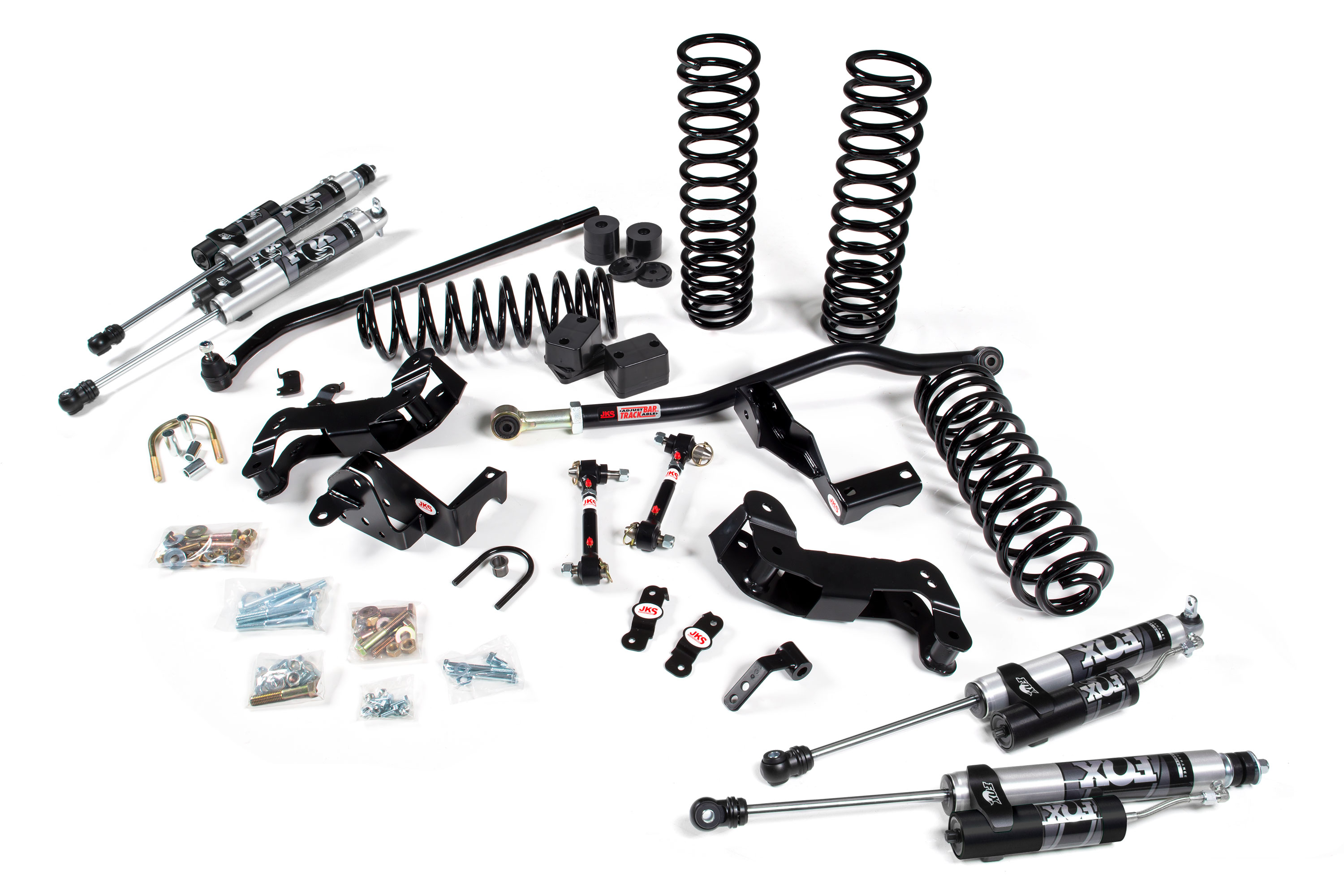 Improve the ground clearance and off road capability of your 4 Door Jeep Wrangler JK with the JKS J-Kontrol 3.5 inch suspension system. The J-Kontrol system retains your OE control arms, but steps up the rest of your suspension.