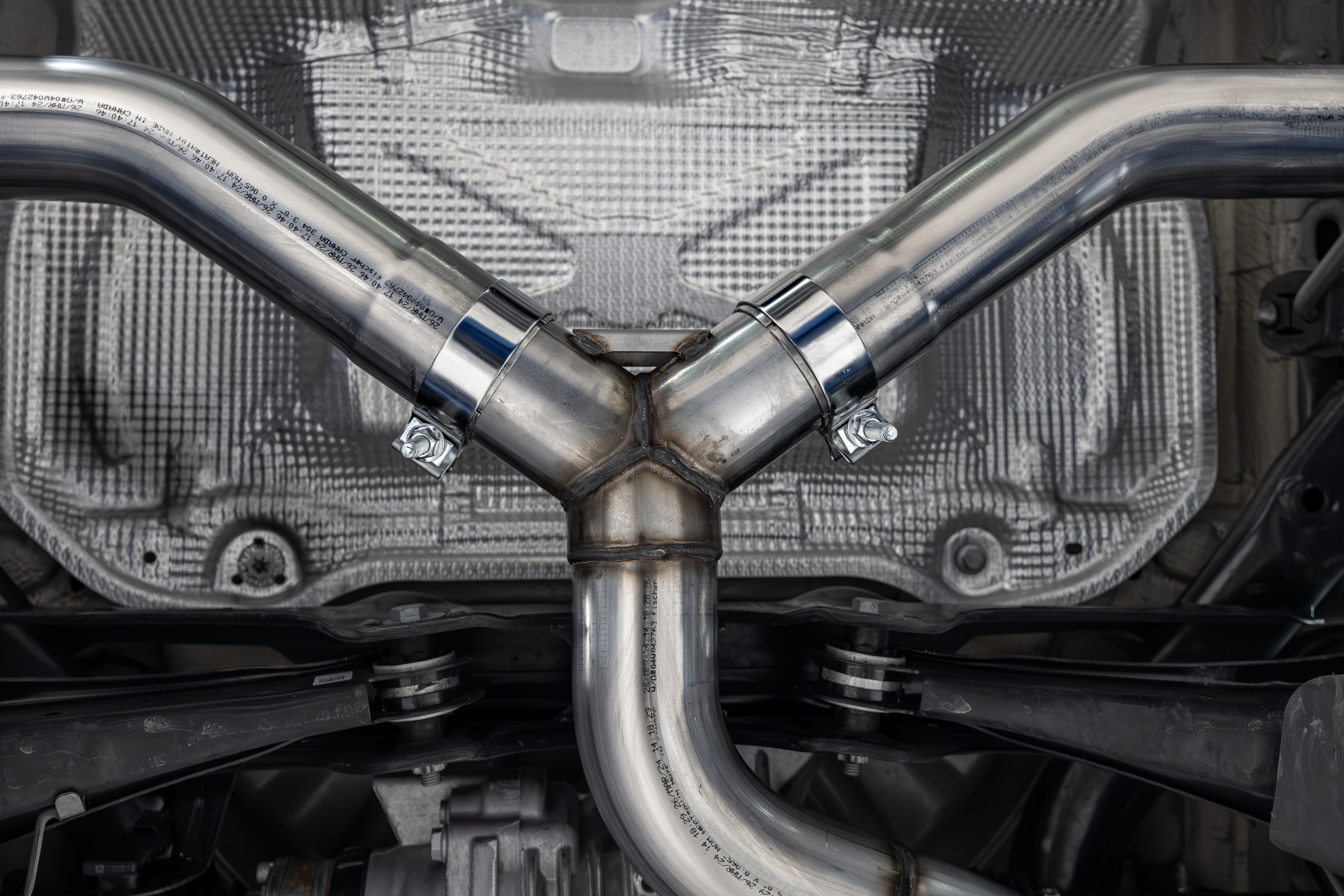 Armor Pro, T304 stainless steel 3 inch cat-back, quad split rear with mirror polished exhaust tips, valve delete