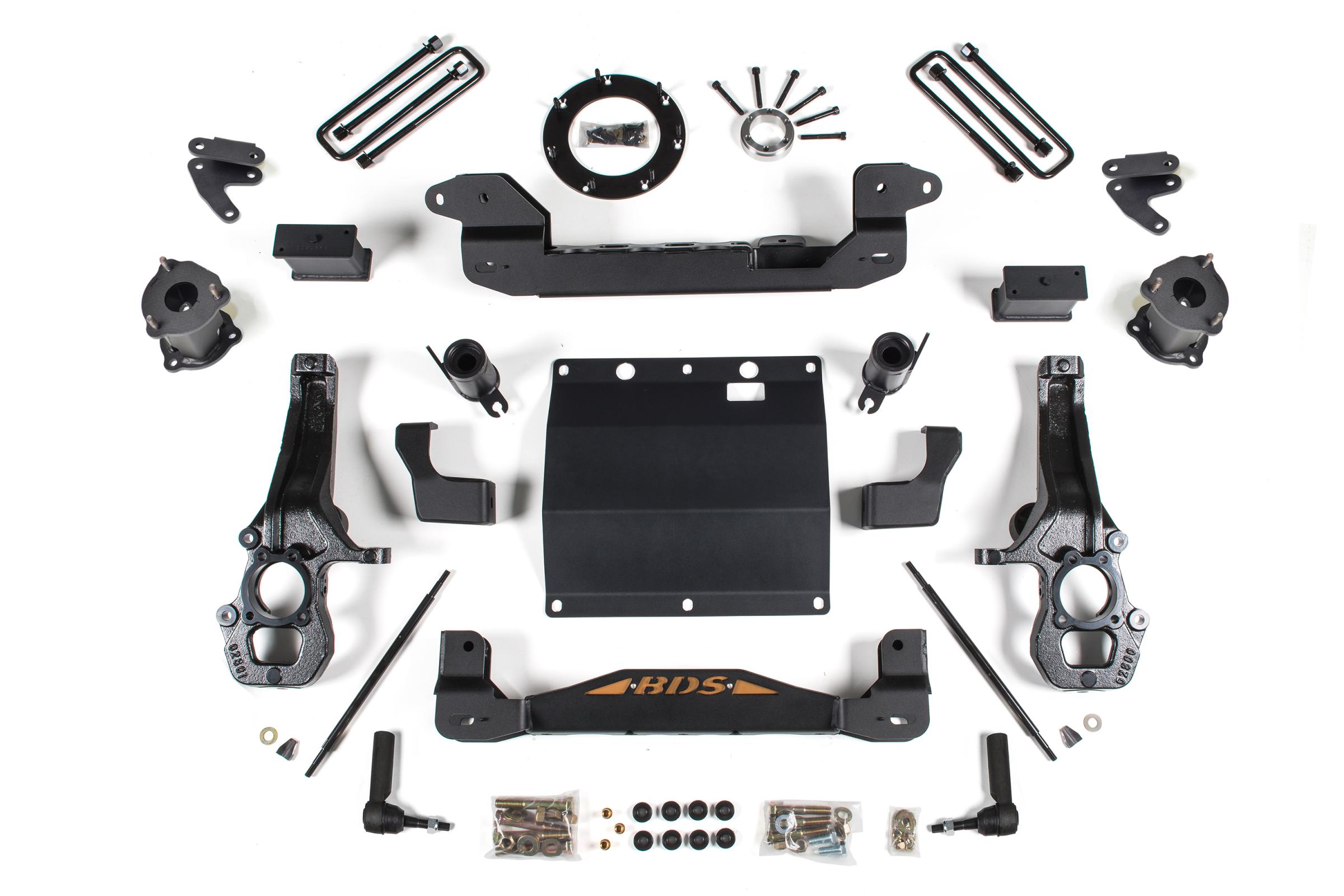 This kit takes advantage of BDS's tried and true high-clearance design for improved ground clearance, strength, and offroad protection while correcting suspension and steering geometry for great on-road handling characteristics.