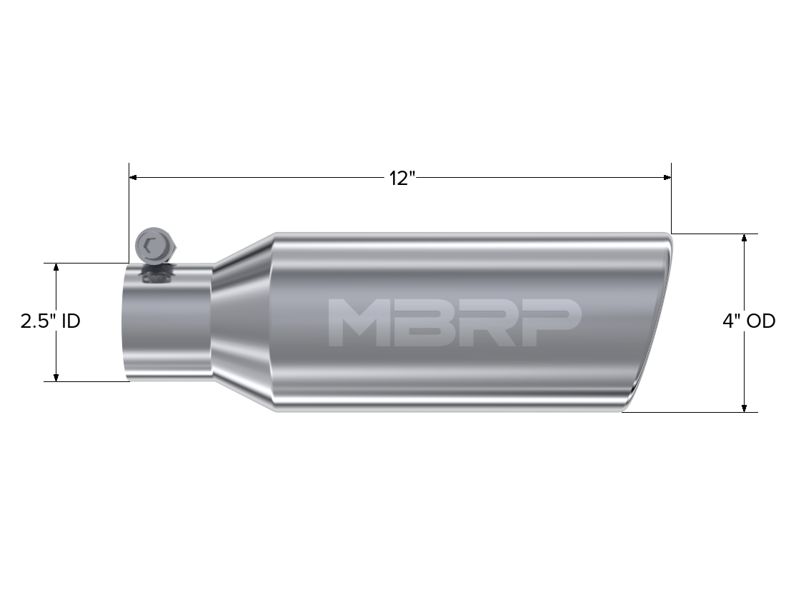 The exhaust tip is the crowning touch to your performance exhaust. It is your opportunity to really show off your personal style. That's why MBRP offers such a wide assortment of high quality, bolt on tips, because everybody has their own idea of style. MBRP offers T304 polished stainless, Black coated, Burnt End and Carbon Fiber tip options in various sizes. The tips are universal fit so be sure to measure your tail pipes outside diameter and match it to the MBRP tip INLET diameter before ordering.