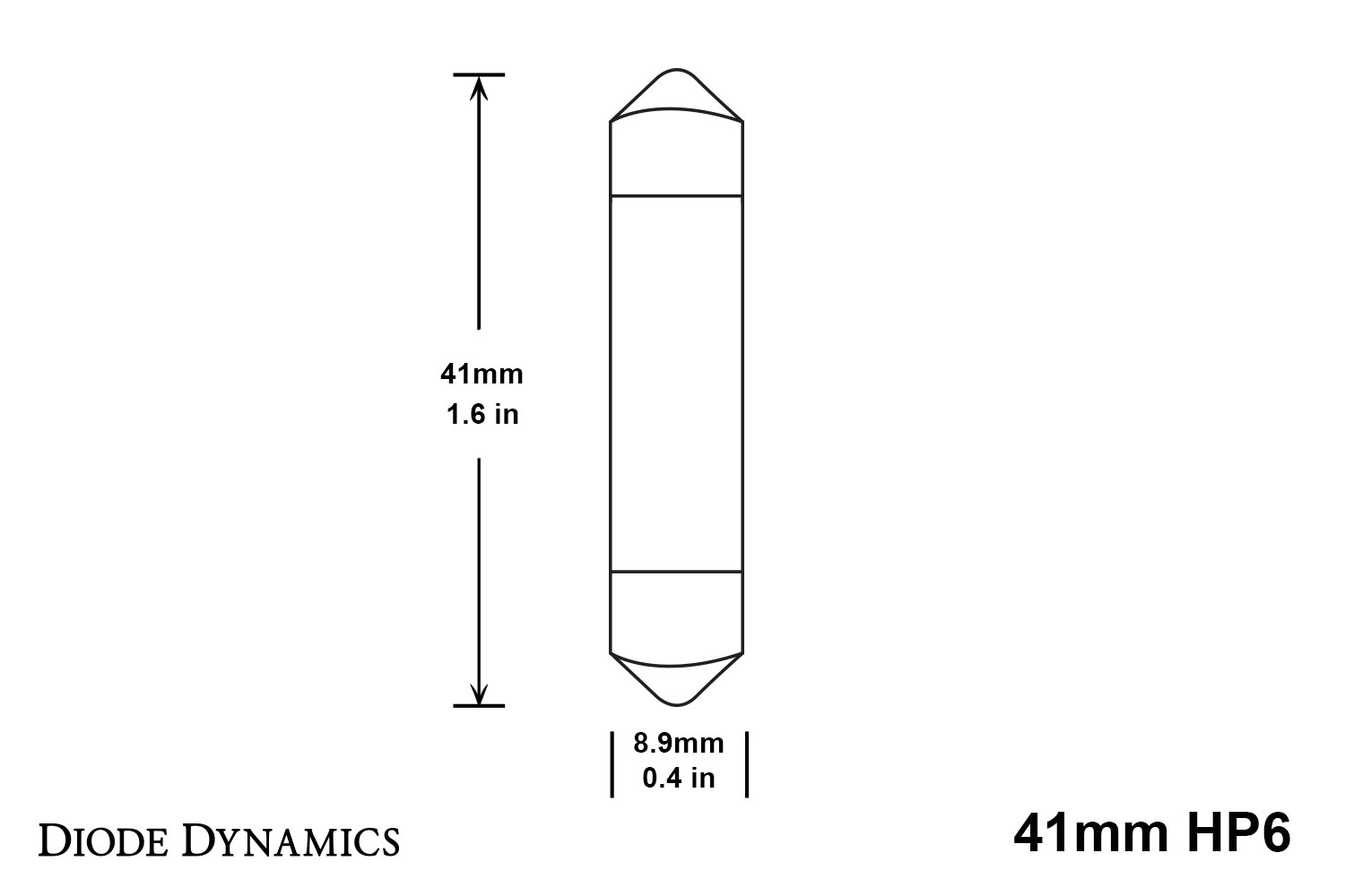 Design. The 41mm HP6 LED bulb is a direct replacement for any 41mm-size bulb, commonly found in map lights, dome lights, and trunk lights in many vehicles. Populated with eight high-power LEDs arranged in an omnidirectional pattern, the HP6 upgrades the factory yellowish incandescent bulb to a more modern LED appearance, while providing far more light output than the factory bulb. Thanks to the frosted cover, the HP6 provides even light distribution and a clean, factory-style appearance. With its durable metal terminals, it will fit snugly in the socket, and its light weight means it won't vibrate loose over time.