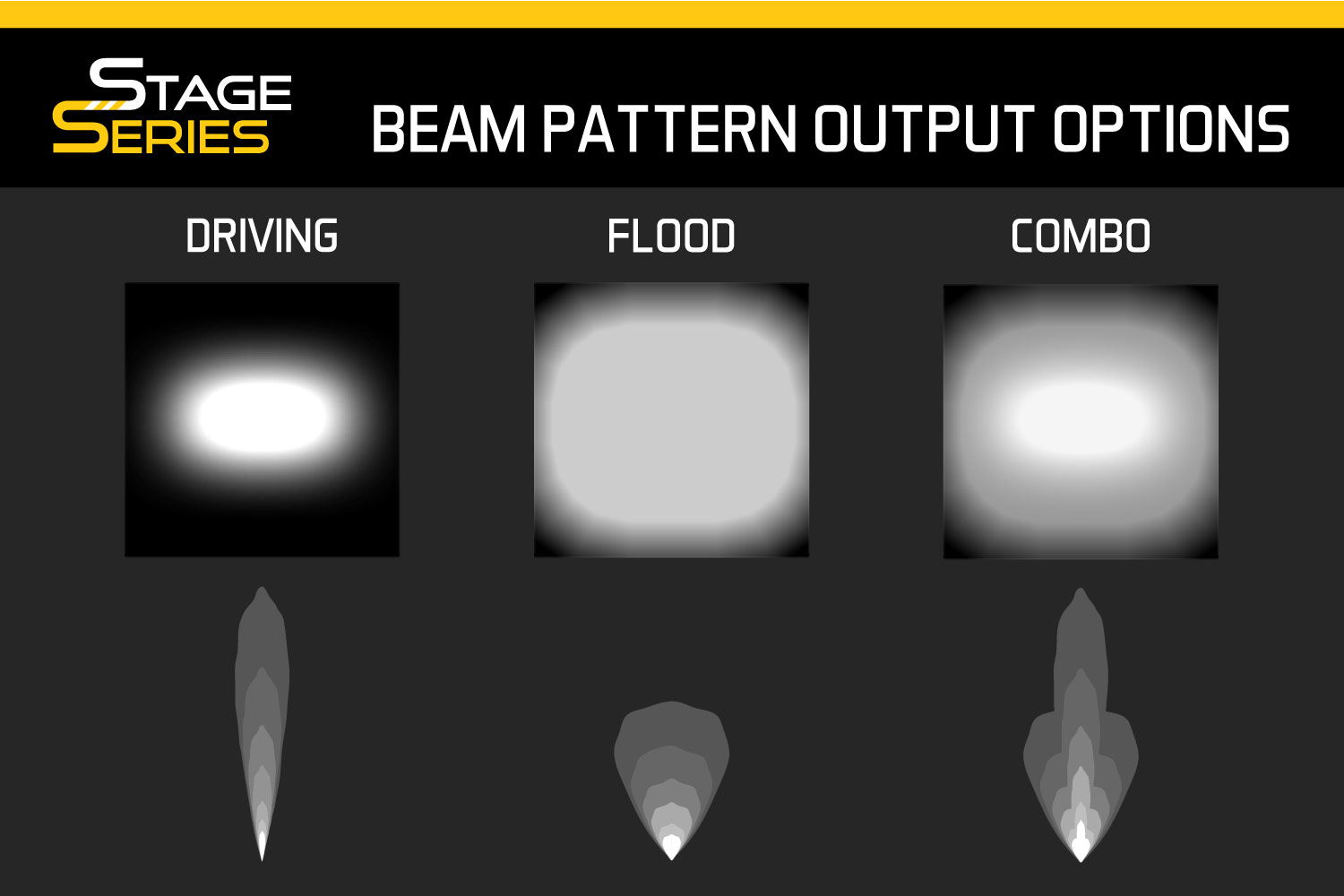 - The Driving pattern was designed to supplement your high beams. Rather than a simple spot pattern, the Stage Series Driving pattern has a rectangular 20Wx8H degree pattern that is far more useful for directing light downrange at high speeds.