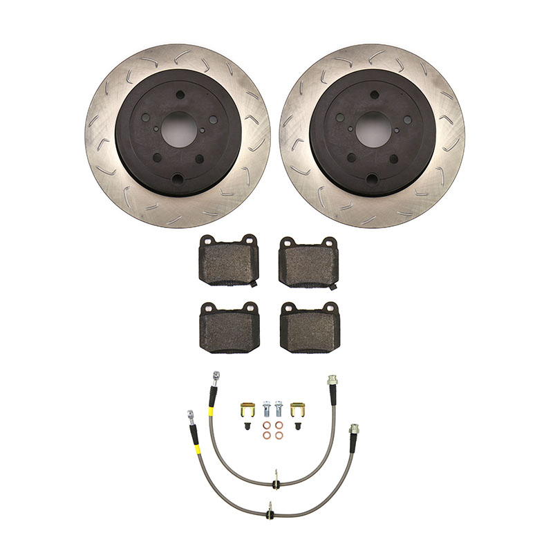 This kit includes new rotors, brake pads, and stainless steel brake lines to improve the braking performance of your vehicle. Rear location Factionfab Swept Slot Bi Directional Rotor Pair Rear