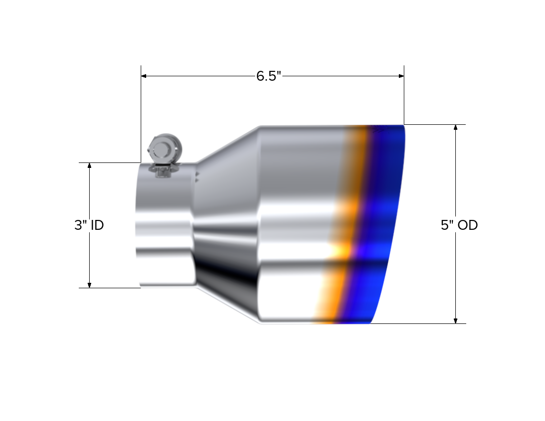 Burnt End Tip 3 inch ID 5 Inch OD Out 6.5 Inch Length Angle Cut Single Wall Universal Tail Pipe Tip T304 Stainless Steel MBRP