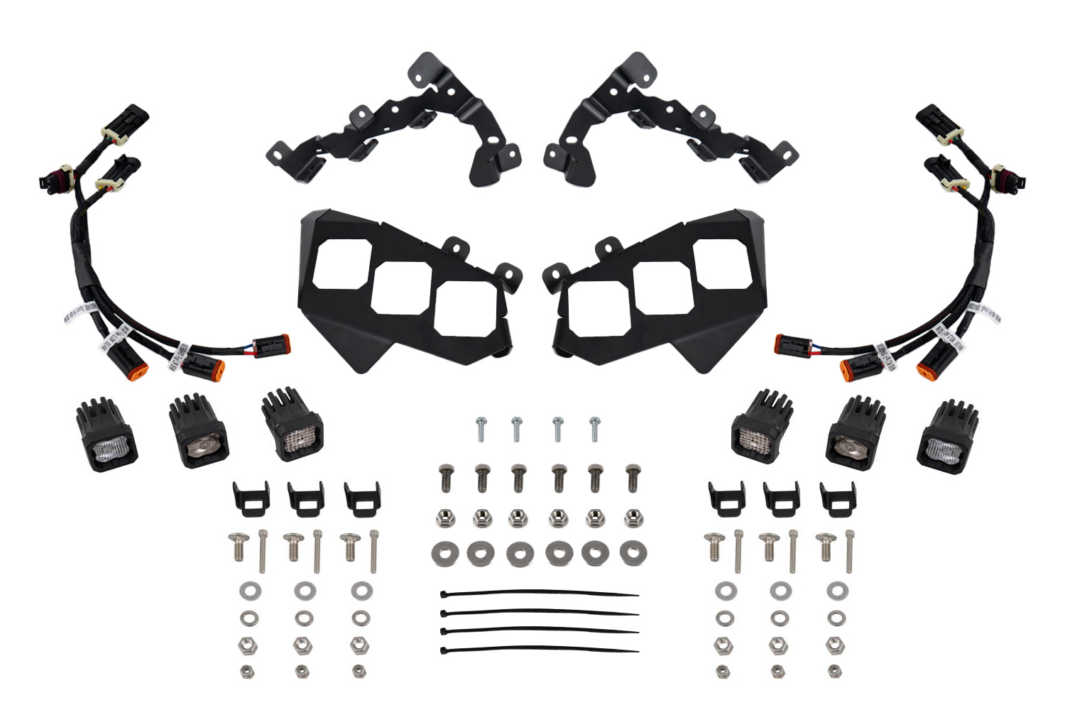 Introducing the Stage Series C1 LED Headlight Kit for the 2017-2024 Can-Am Maverick X3! This Headlight Kit is completely plug-and-play and the CAD-designed brackets allow you to mount six SSC1 LED Pods directly into the factory headlight openings. The LED pods feature custom-engineered TIR optics combined with high-power LED chips that deliver maximum headlight performance for the Maverick.