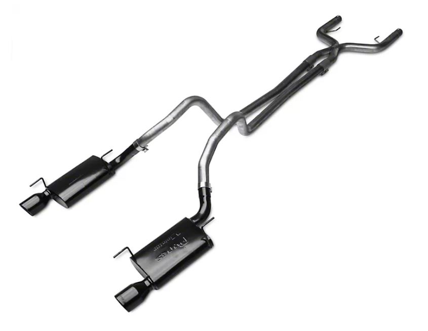 Cat Back Exhaust System 05-10 Mustang V6 Split Rear Dual Exit 2.5 in True Dual After-Cat X/Mid Pipes/Hardware/Violator Muffler/4 in Black Tips Incl Pypes Exhaust