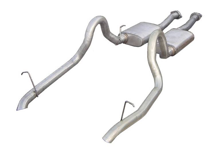 Our mufflers, X-pipe, OEM style stainless tailpipes, are also stainless constructed and precision matched to deliver the ultimate in sound and performance. Cad plated or stainless clamps, stainless hangers and polished stainless tips are available and included in most systems. These systems can be installed at home without any special tools. Does not fit staggered shocks.