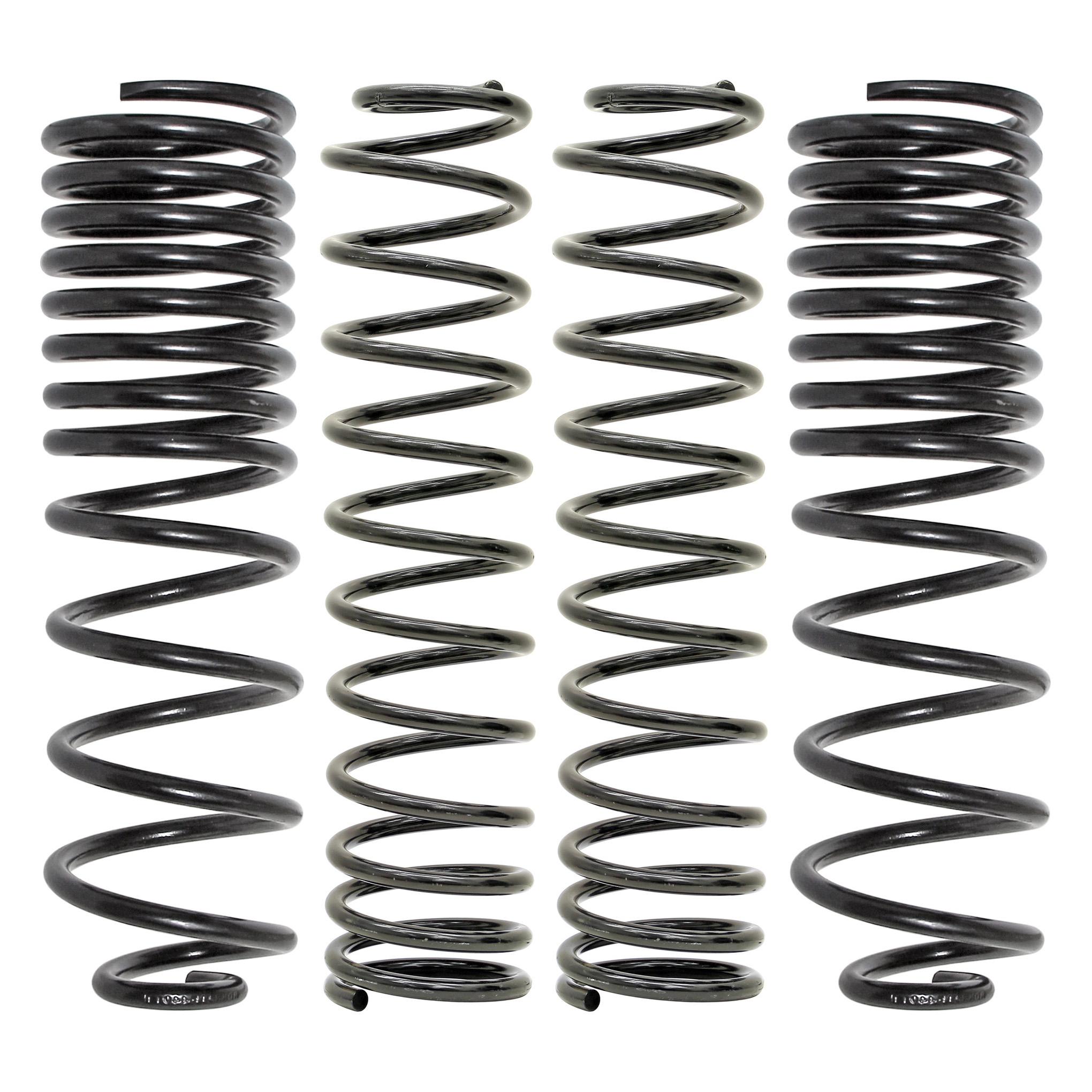 This spring set, besides lifting the vehicle 3.5 inch, also levels the vehicle and provides an improved ride. Extensive research was done by RockJock to develop the perfect combination of rates and quality of the coil springs.