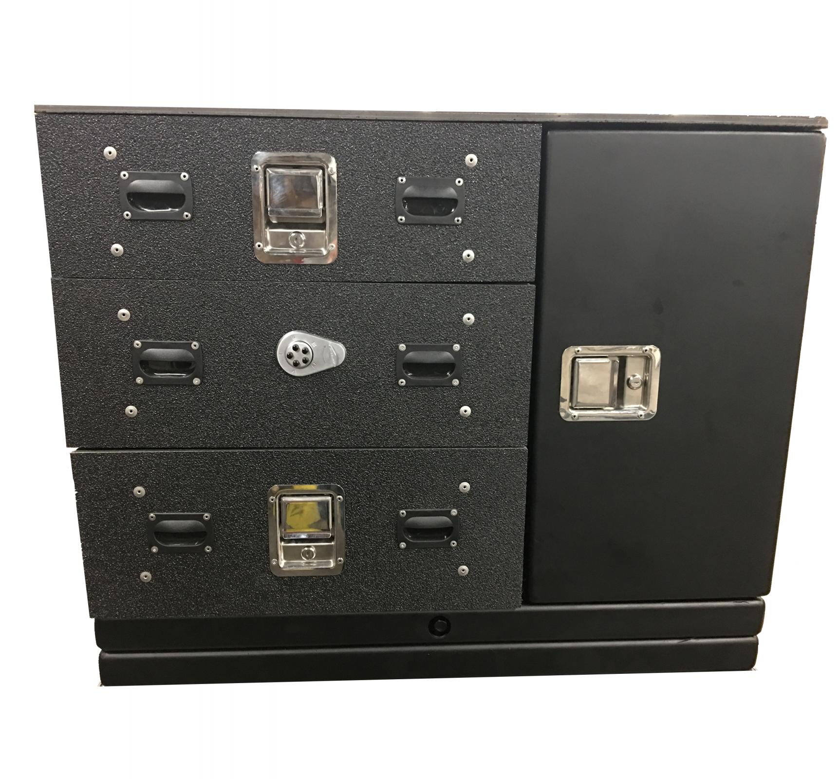 - Middle drawer 2 is 10 high with 5 digit push button lock with turn key override