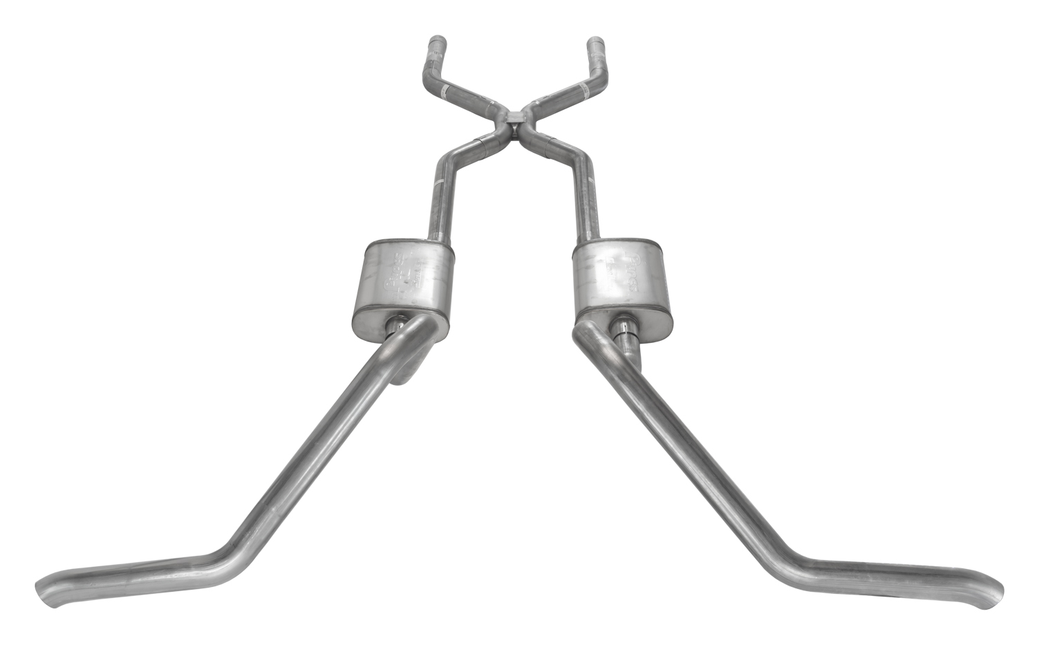 Crossmember Back w/H-Pipe Exhaust System 65-70 B-Body Split Side Dual Exit 2.5 in Intermediate And Tail Pipe Race Pro Mufflers/Hardware Incl Tip Not Incl Pypes Exhaust