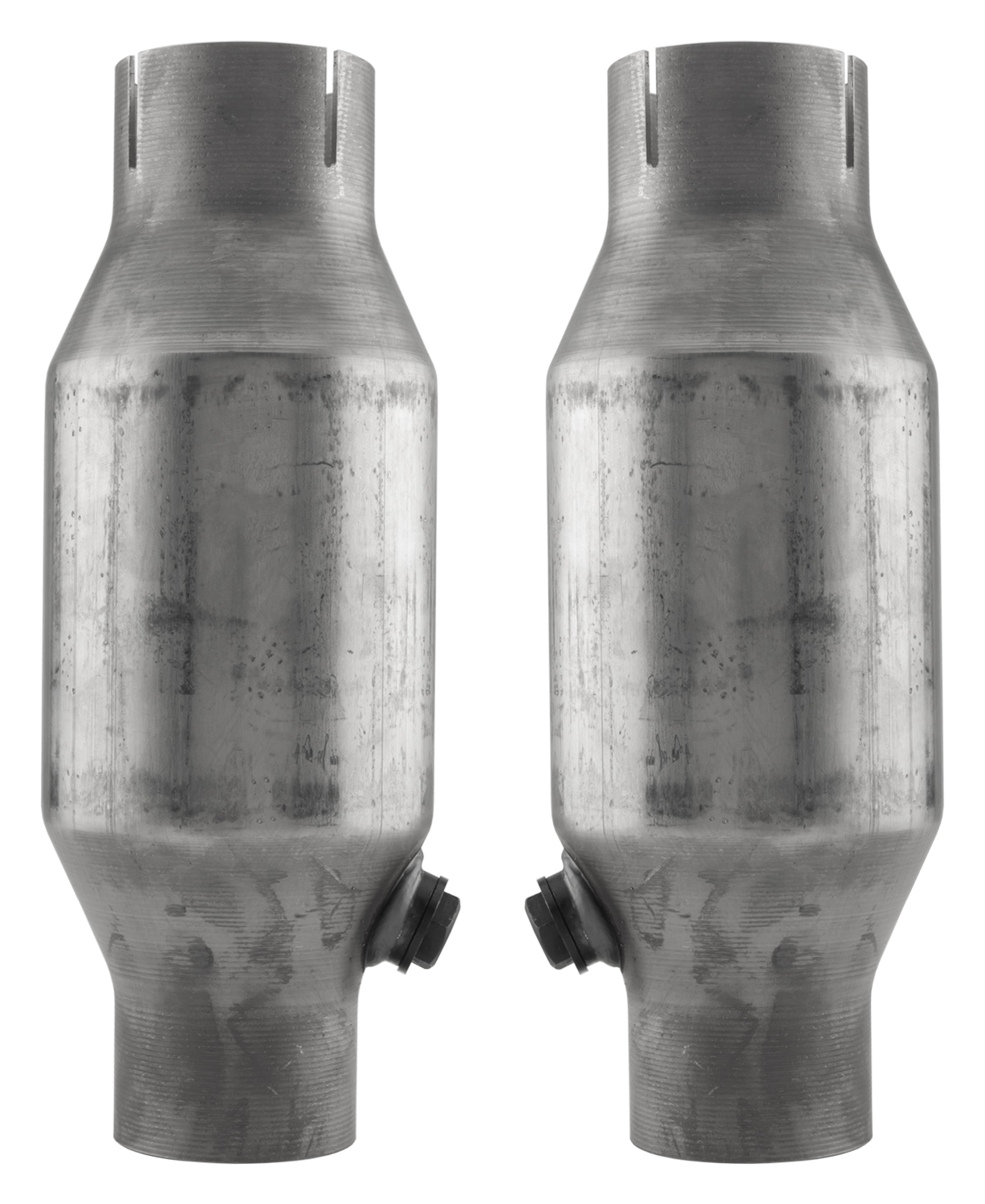 These converters are a made from a high quality 304 grade stainless steel. The ceramic substrate is a durable factory style design. These converters feature a 2.5 inch slip fit design with an overall length of 11 inch. The overall diameter is 4 inch.