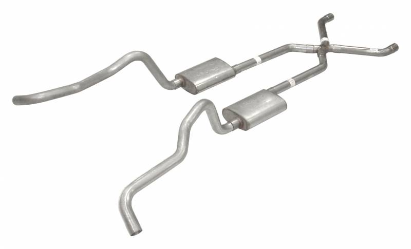 Crossmember Back w/X-Pipe Exhaust System 55-57 Chevy Wagon Split Rear Dual Exit 2.5 in Intermediate X-Pipe And Tail Pipe Turbo Pro Mufflers/Hardware Incl Tip Not Incl Pypes Exhaust
