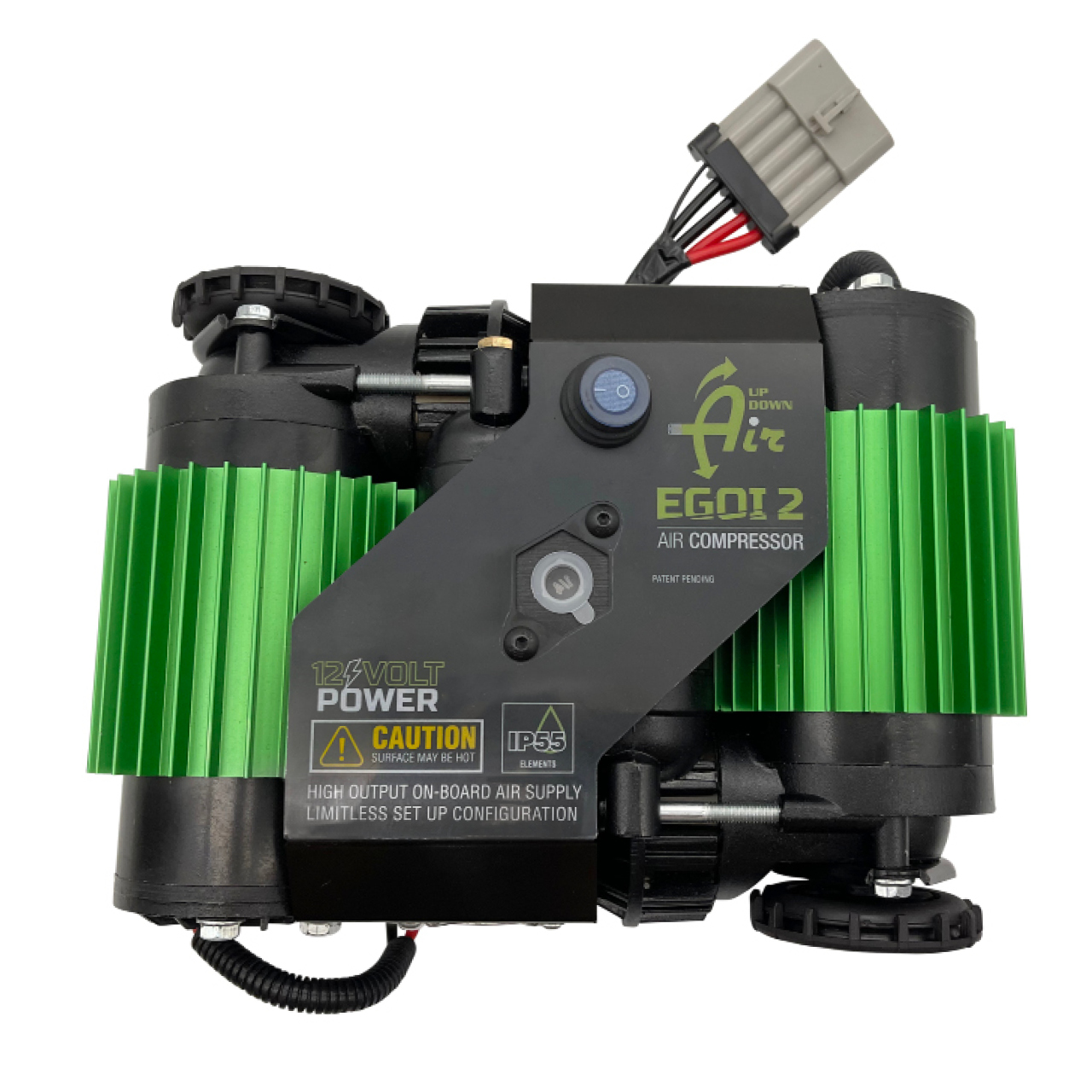 EGOI Permanent On Board Dual Motor Air Compressor System 6.1 CFM The UDA EGOI 2 Air Compressor is full of power and designed to withstand the most extreme elements. You don't have to be an air aficionado to understand that this system is loaded with performance and will handle anything you throw at it.