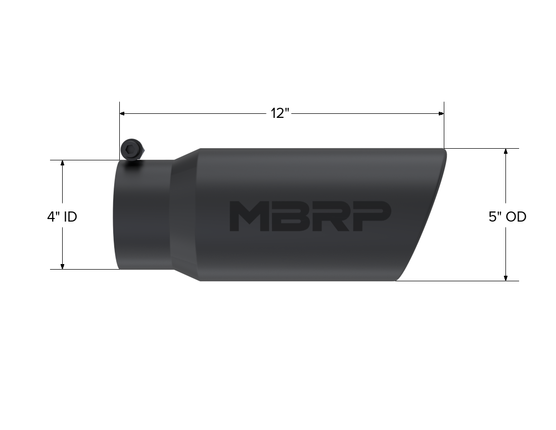 Exhaust Tip 5 Inch O.D. Angled Rolled End 4 Inch Inlet 12 Inch Length-Black Finish MBRP
