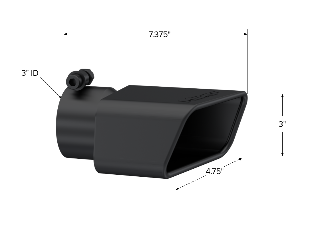 Black-Coated Tip, 4.75 Inch Rectangle Angled Cut, 3 Inch ID, Driver Side 7.375 Inch Length
