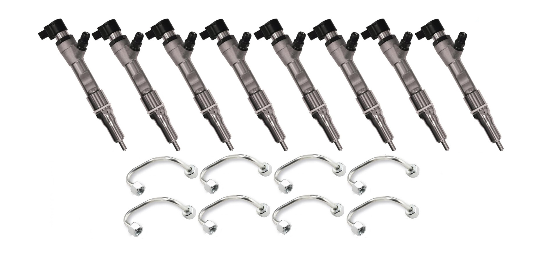 Intended for high performance use and light towing with modified turbos. Recommend modified or dual injection pumps and custom tuning to maximize performance. Can be used with stock fuel system but not ideal. Use of pyrometer mandatory. Includes injector line set. Sold as a balanced and matched set.