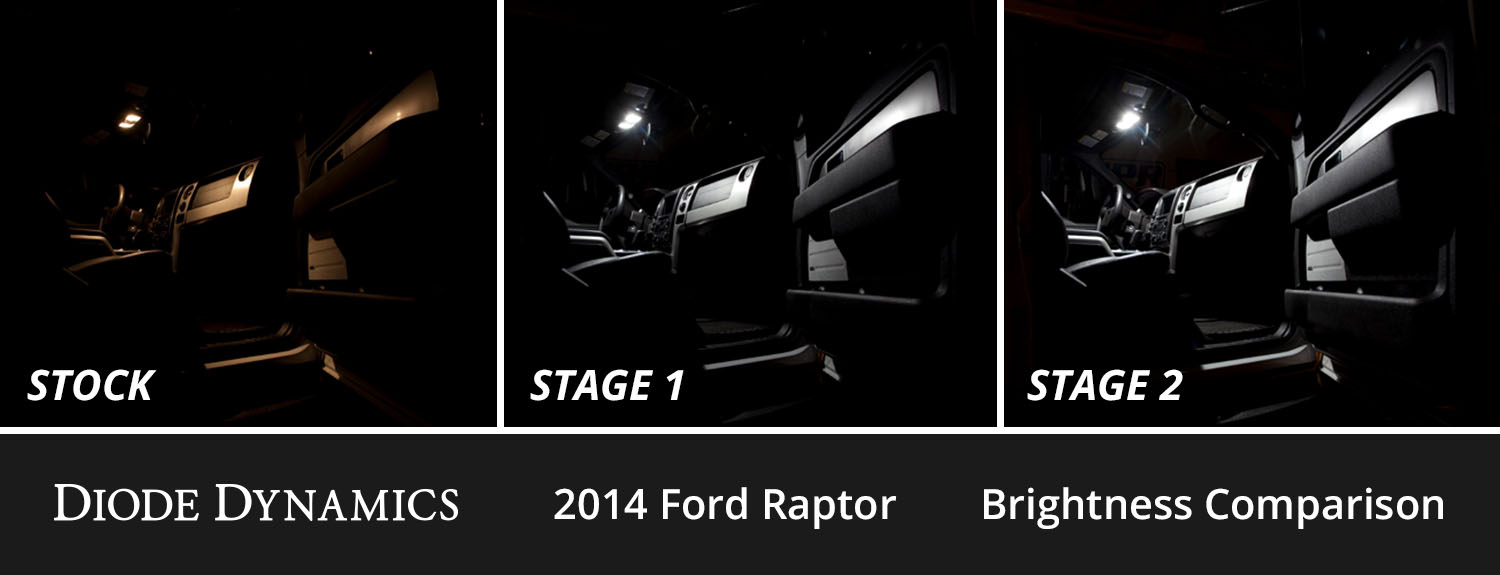 Brightness. This kit is available in two levels of brightness Stage 1 and Stage 2. Stage 1 gives your interior an ultra-modern appearance while providing a slight increase in output compared to your factory lighting. Stage 2 steps things up with a significant increase in overall light output throughout the interior.