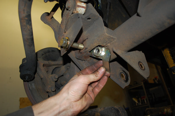 This is a new flange bolt kit that is now used on all of our HD track bar kits. Our HD track bars use larger bushings which have a 9/16 Inch through hole shown below. This will require you to drill out the OEM axle sidetrack bar location.