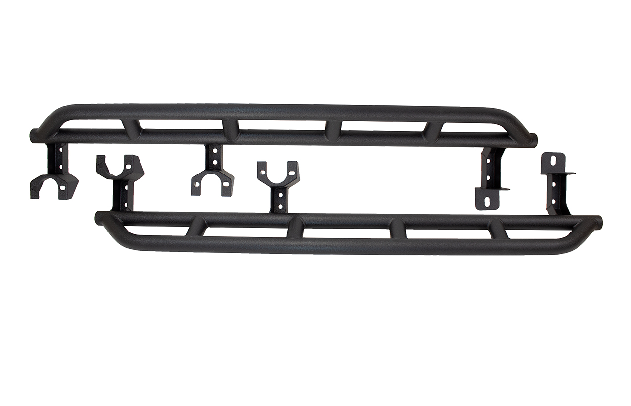 Protect the side of your Jeep with Fishbone Offroad Rocker Guards for your 4 Door JL Wrangler. These mount to the underside of the Jeep using 3 mounting locations and provide you with protection on the trail and a step to help the family get into your Jeep.