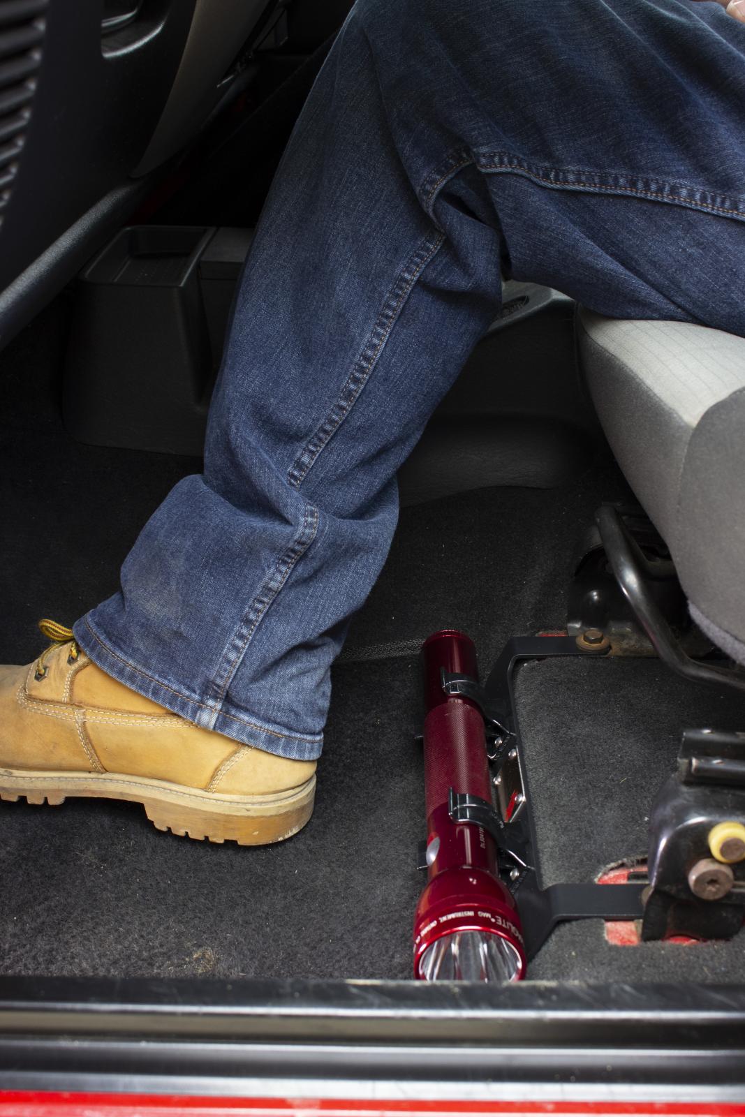 - Mounts on driver or passenger seat mounts