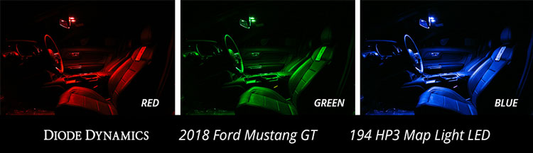 Upgrade. Add a modern appearance to your Ford Mustang with this Interior LED Conversion Kit. This kit includes all the LEDs you need to replace the factory map, vanity, and glove box incandescent bulbs. These bright LEDs are available in a number of colors including cool white, red, green, and blue, to match your unique style.