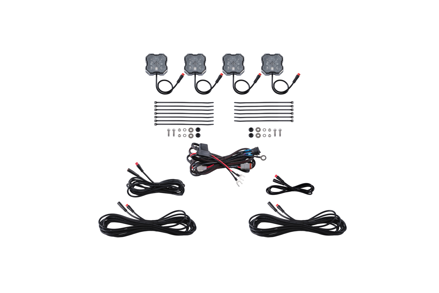 This kit includes all the wiring and hardware necessary to mount eight Stage Series LED rock lights making it easier than ever to add rock lights to your vehicle.