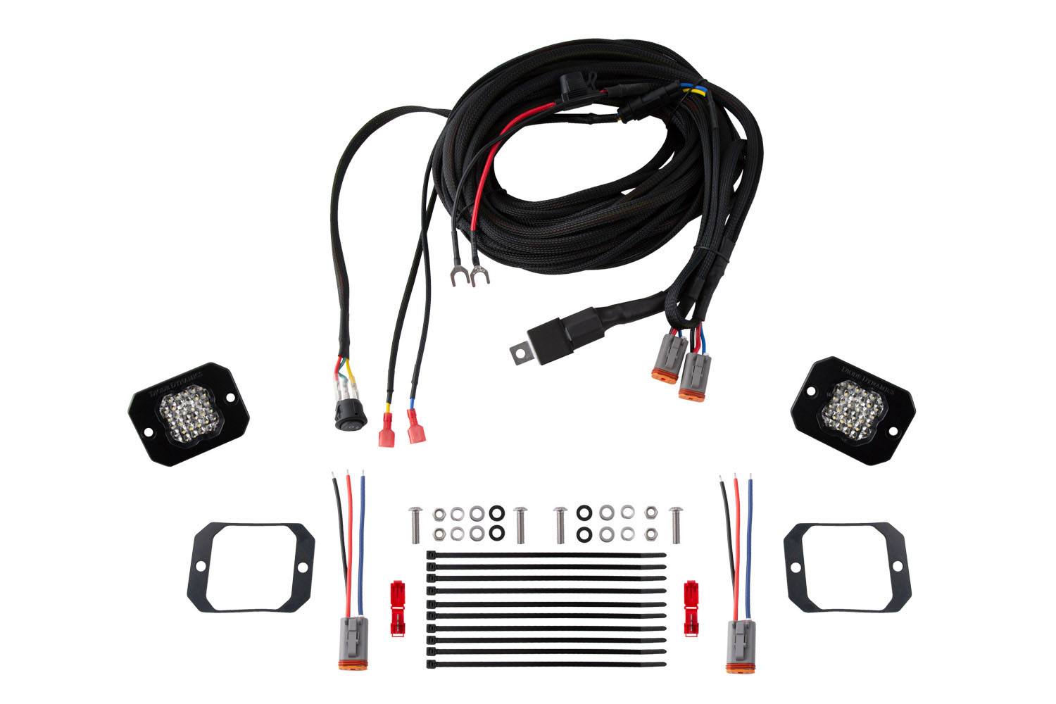 Overview. Add significantly more light output when backing up at night with our Stage Series Flush Mount Reverse Light Kit! This kit allows you to mount two flush mount SSC1 or SSC2 LED pods in your rear bumper adding a high-power reverse light along with a red accent light. With the included wiring harness this kit connects to your vehicle's wiring for simple everyday operation.