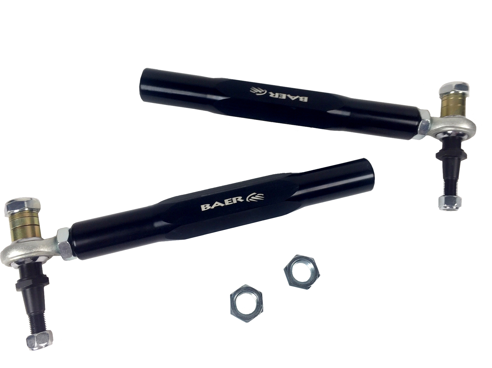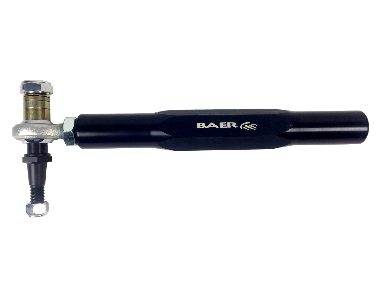 The BAER Trackers feature a 6061 T-6 fully machined sleeve that is anodized black, that is mated to a Teflon lined heim joint and machined pin which has correct taper so spindles are not required to be drilled/modified. These are vehicle specific pieces that help correct bumpsteer issues do to modified suspensions and/or poor OE design. Best of all these are made in the USA!