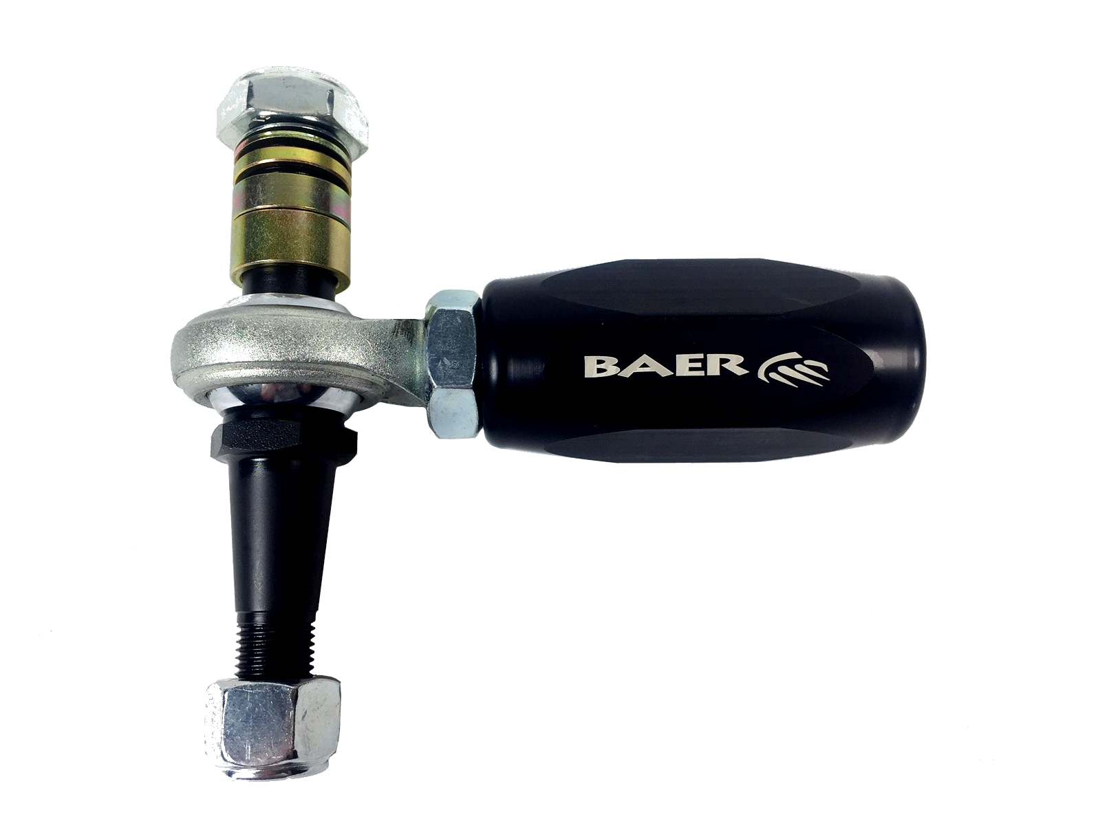 The BAER Trackers feature a 6061 T-6 fully machined sleeve that is anodized black, that is mated to a Teflon lined heim joint and machined pin which has correct taper so spindles are not required to be drilled/modified. These are vehicle specific pieces that help correct bumpsteer issues do to modified suspensions and/or poor OE design. Best of all these are made in the USA!